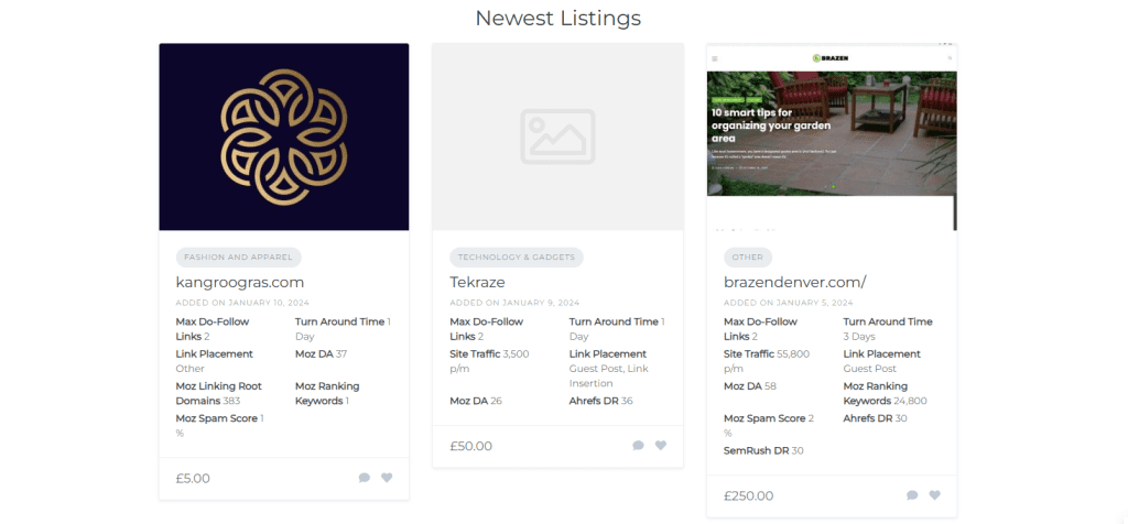First off, it is a place for owners of guest posting sites or websites that they use for link building. Here, sellers can create an account for free and list up to 20 free listings.