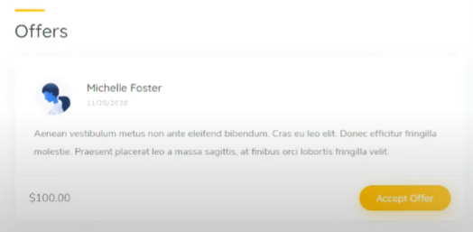Once the user has created a request, vendors can post offers toward this request, much like bidding. The user can then choose the offer they like the most, make the payment and get the work carried out by the seller with the best offer.